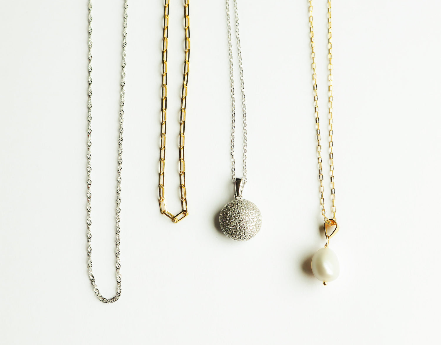 We use genuine freshwater pearls, chosen for their unique shapes, soft lustre, and natural beauty. No two pearls are the same, making each piece of pearl jewelry completely unique.