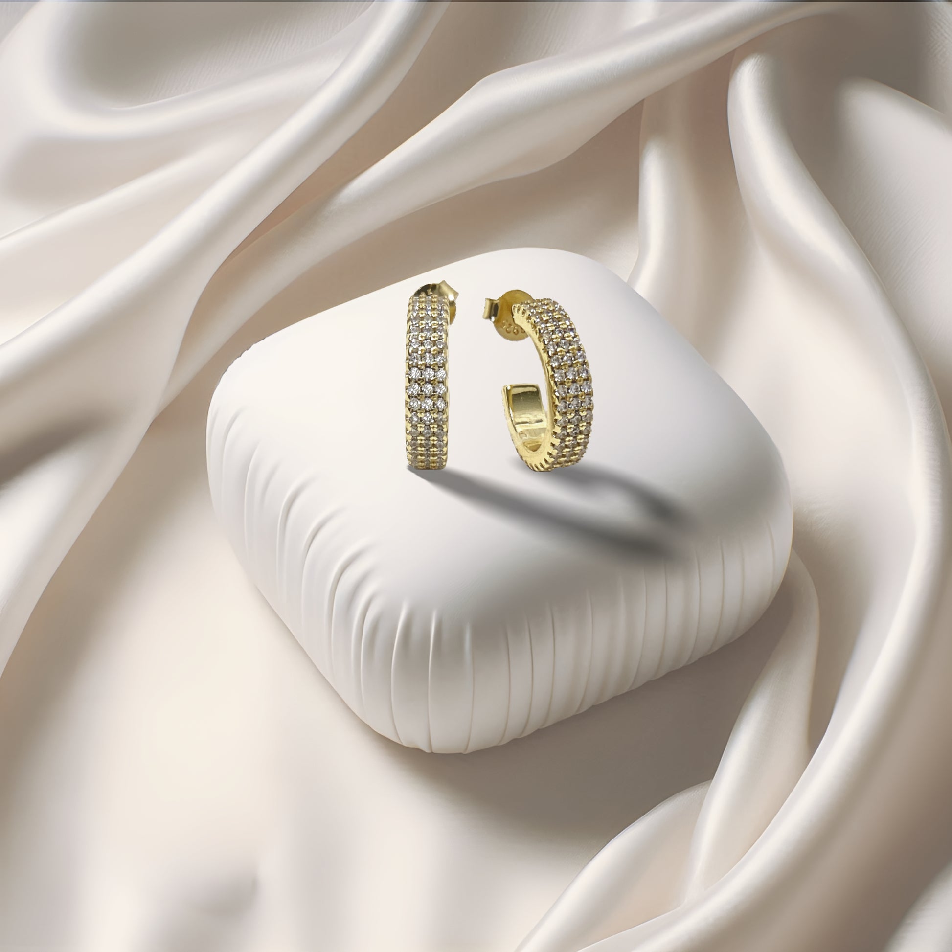 Elevate your style with our Ribbed Hoop Earrings! The interesting mix of Zirconia crystals and a ribbed texture makes these hoops bring a chic modern touch to any outfit.